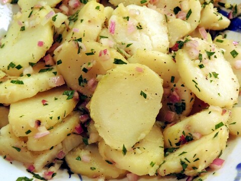 One of the loveliest dishes in all of French cooking and arguably the greatest of all summer salads is sliced boiled or steamed potatoes simply dressed with oil and vinegar and served at room temperature. Called "salade de pomme de terre à la Parisienne" or sometimes "pommes de terre à l'huile," it's lighter than its mayonnaise-dressed cousins, and is served both on its own or as one of the components of a composed salad.