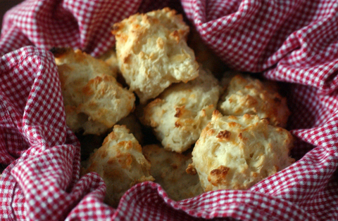 Because drop biscuits require very little handling, there’s very little chance of overworking the dough, and they’re the most forgiving of all the biscuit family of an imperfect balance of dry to wet ingredients. These cheddar-flecked morsels are doubly easy since there’s no shortening to cut in: The fat they need for tenderness is all contained in the liquid.