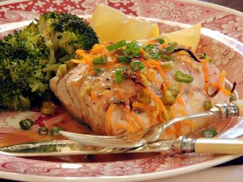 Fish Baked with Orange, Lemon, Ginger, and Sherry and finished with a butter sauce made from the cooking juices