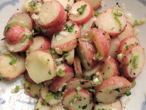 There is also a mayonnaise-dressed potato salad in the French repertory that’s similar to ours and this one is sometimes called “à la Parisienne” or “pommes de terre à l’huile.” The secret to its lovely, mellow flavor is that the hot, cooked potatoes are sprinkled with dry white vermouth, which is allowed to soak into them before they’re dressed.