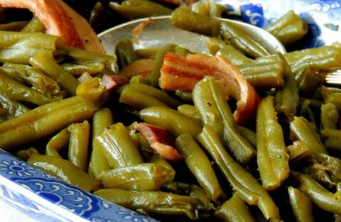 One of the most misunderstood dishes in all of Southern cooking is green beans slow-simmered with salt pork or ham until they're tender and deeply infused with the pork flavor. It's easy to understand why it has been misunderstood when one sees the misguided mess that all too often passes for this dish in "Southern" style diners and cafeterias: canned or generic hybrid green beans that inhabit most supermarket produce bins, indifferently boiled to Hell and back with a chunk of boiled ham or half a dozen slices of smoked bacon until they're the color of army fatigues and have surrendered what little flavor they had to begin with.