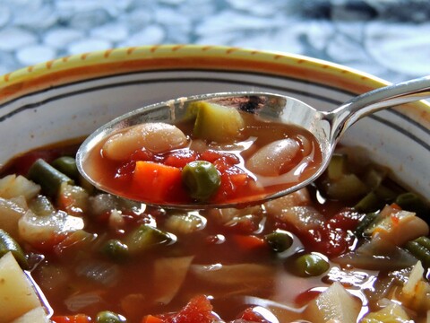The comfort that that soup offers is closely tied to being with my mother in her kitchen, but even when I’m making vegetable soup in my own kitchen alone, there’s something deeply satisfying in the ritual. It doesn’t matter what kind of vegetable soup it is: It might as easily be my mother’s or grandmother’s soup, the okra soup that is a signature of my adopted home in the Georgia lowcountry, hambone soup from other parts of the South, or the one I seem to turn to most often—the minestrone I fell in love with in Italy.