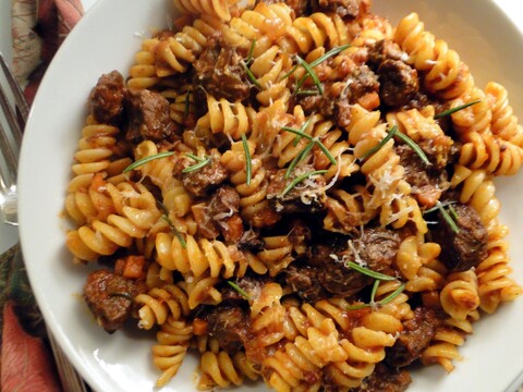 This handsome ragù actually began as a way of using up leftover braised short ribs. But it quickly became apparent that the flavors of that dish, while fine all by themselves, needed to be more robust if they were going to successfully mate with pasta. And by the time the final sauce was done, it was no longer a one-time way of repurposing leftovers, but a dish that was an end in itself, one that was certain to become a staple in my fall and winter cooking.