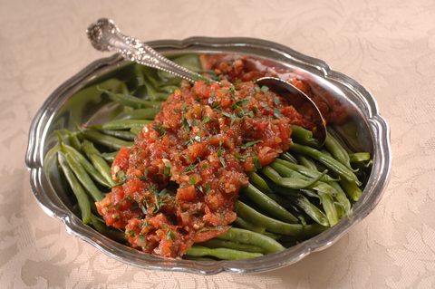 Young Green beans, which often go by their swanky French name, "haricots verts"--in fresh tomato sauce -- photography by John Carrington, from The Savannah Cookbook