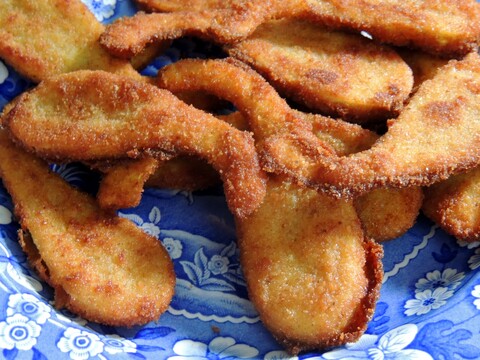 Here's a nice little recipe that's simple and great practice for beginner fryers. There are two key secrets to success in pan-frying squash: they should be very fresh and still quite young (leave the more mature ones for the stewing pot), and the breading should always be given time to set before it meets with the hot fat.