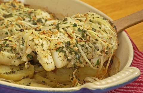 Baked Fish with Potatoes and Onions, an old Southern dish that bears striking resemblance to the cooking of Liguria, is just the thing to begin a Lenten discipline in your kitchen. Photograph by John Carrington Photography